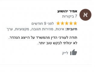 אנו מאמינים במצוינות! הקפדה על הפרטים הקטנים ניכרת בכל שלבי הטיפול בלקוח. "אלוהים נמצא בפרטים הקטנים" - זו אבן היסוד של משרד רן-תירוש ושות'.
